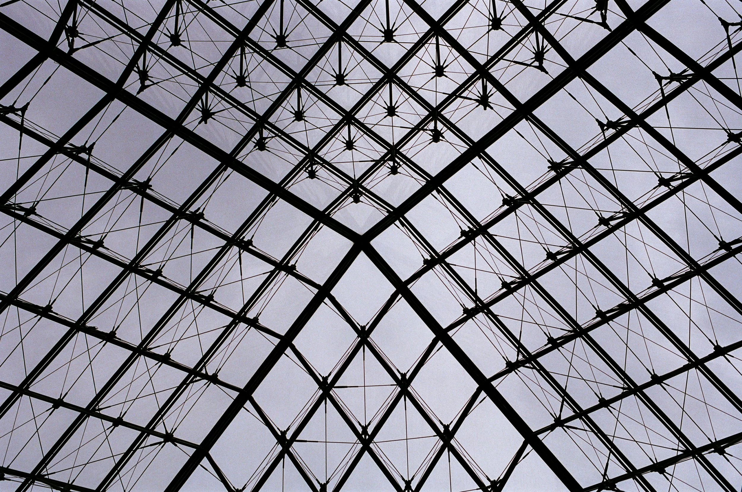 A unique perspective of the frequently photographed Louvre Museum.